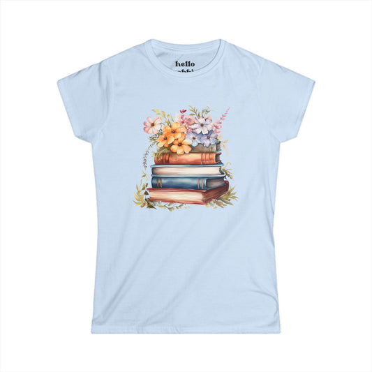 Floral Books Women's Softstyle Tee - Perfect for Book Lovers